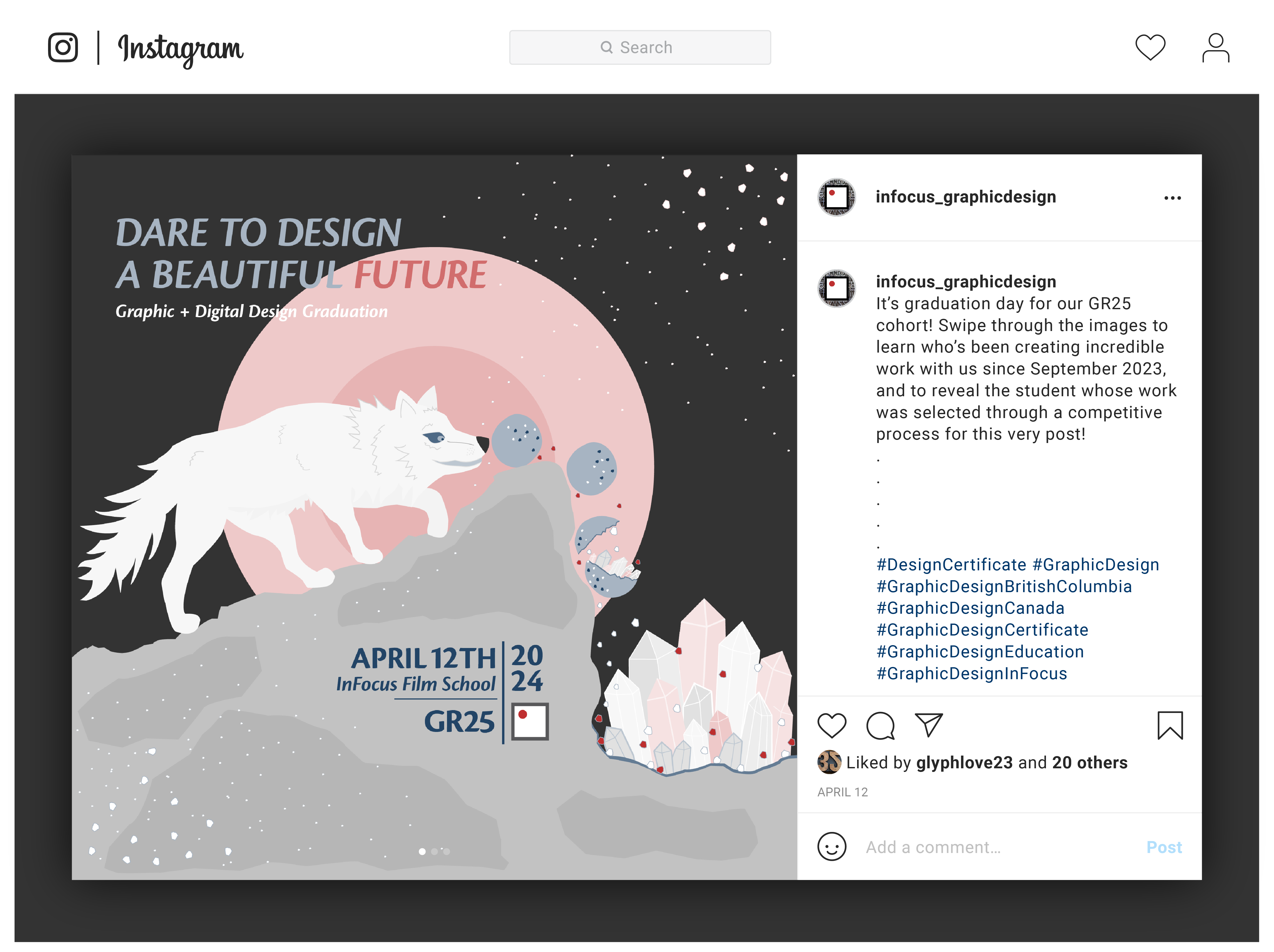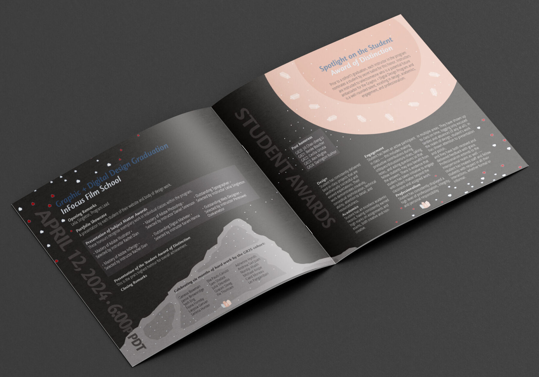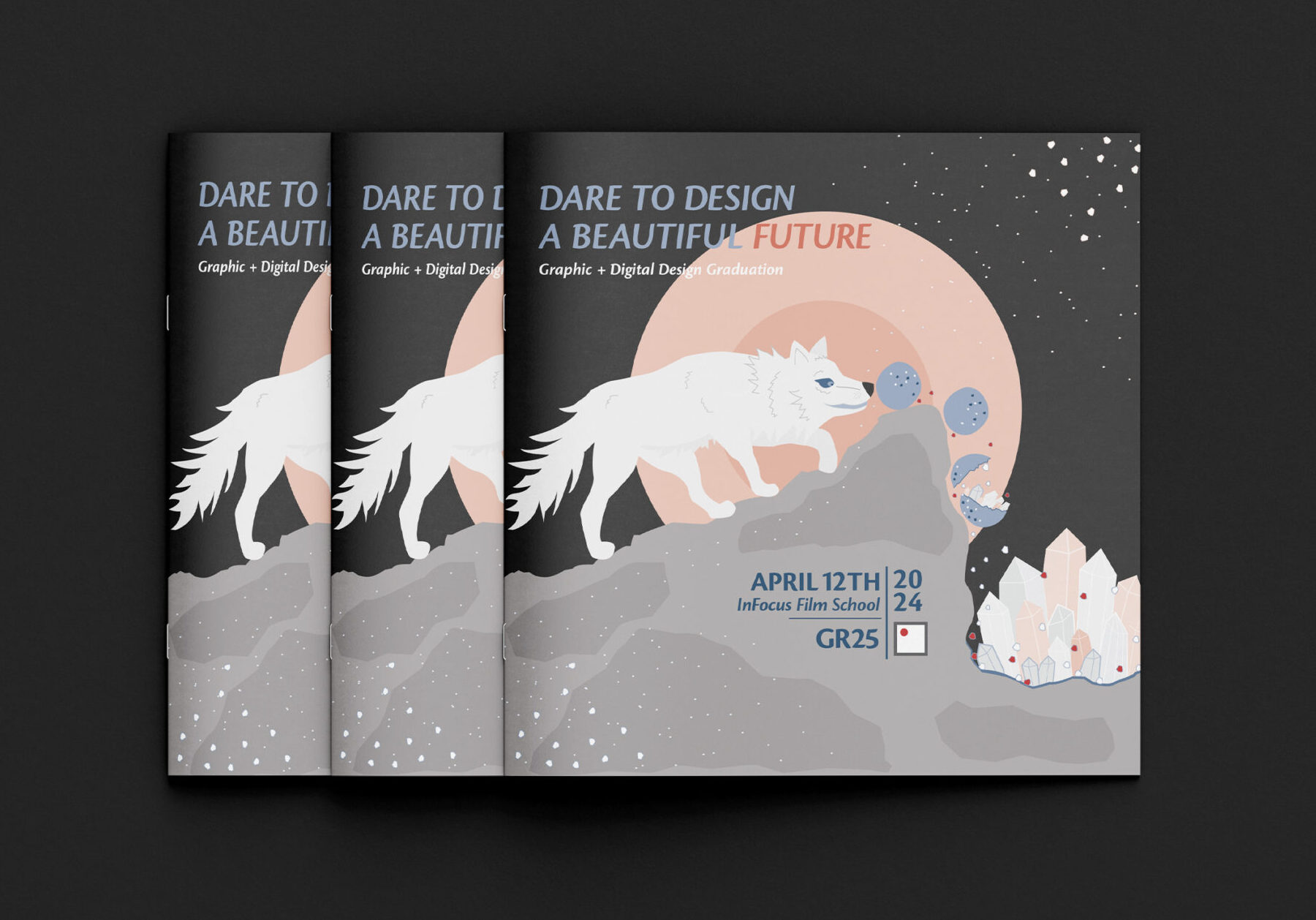 Creation of concept and design to fit a graduation identity titled “Dare to design a beautiful future”.